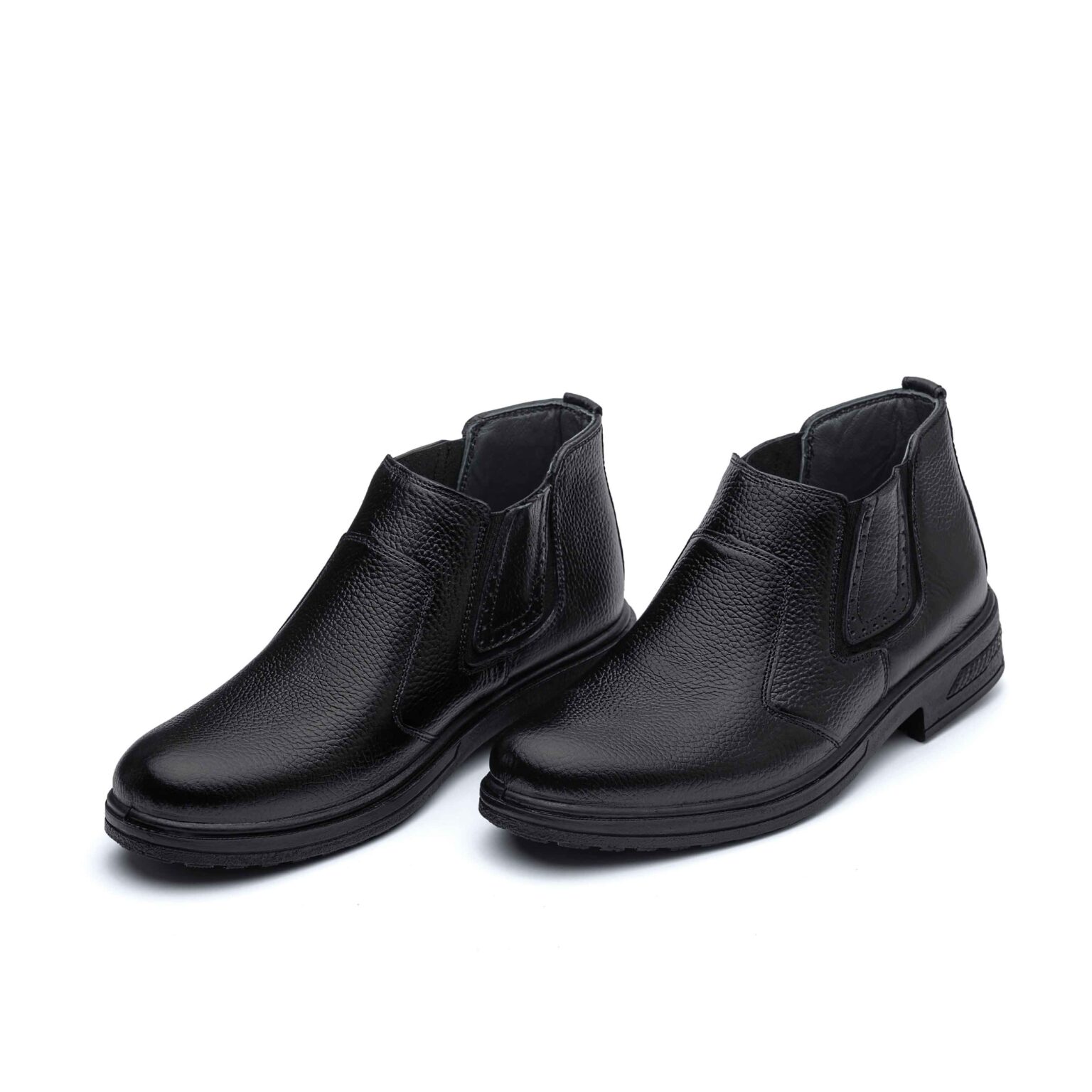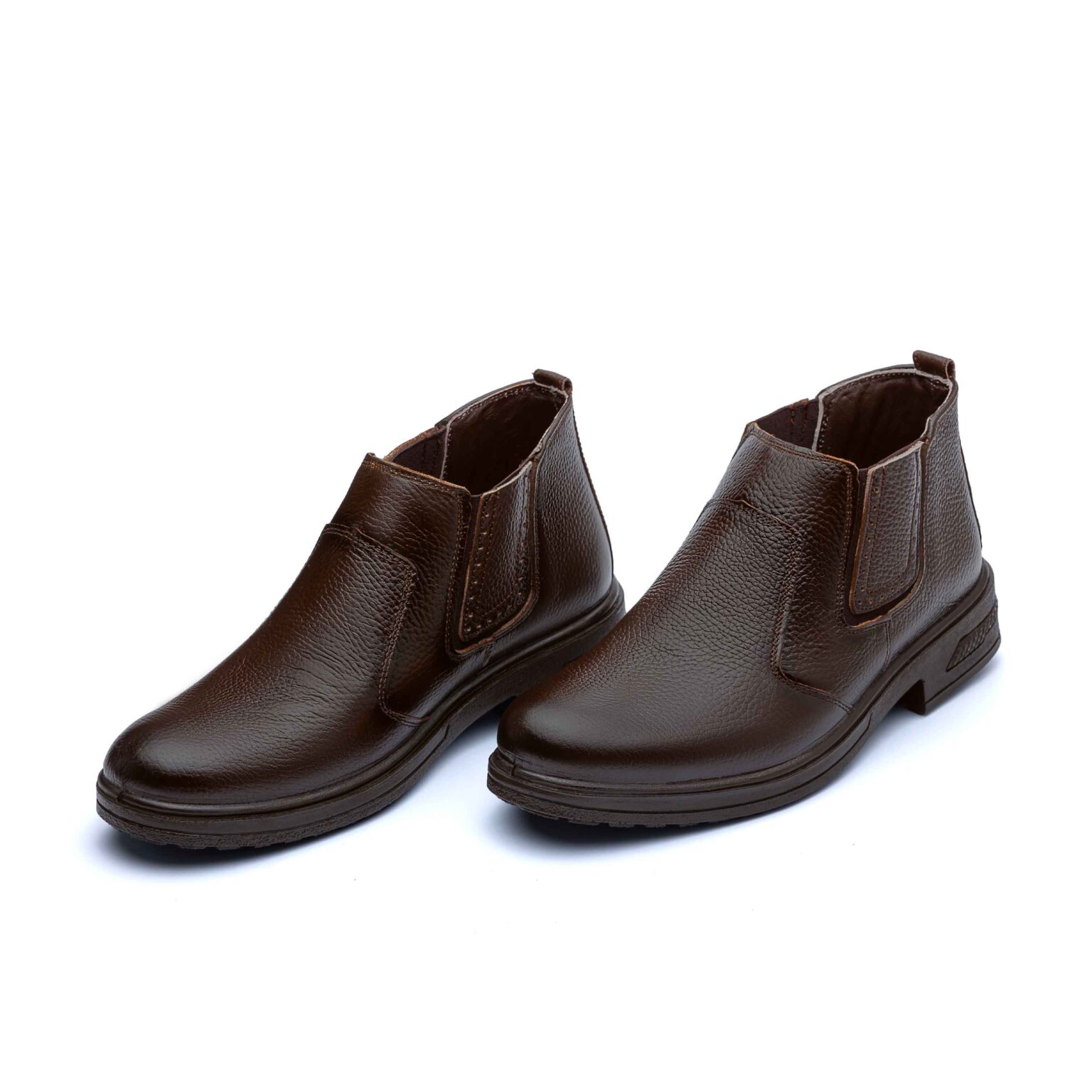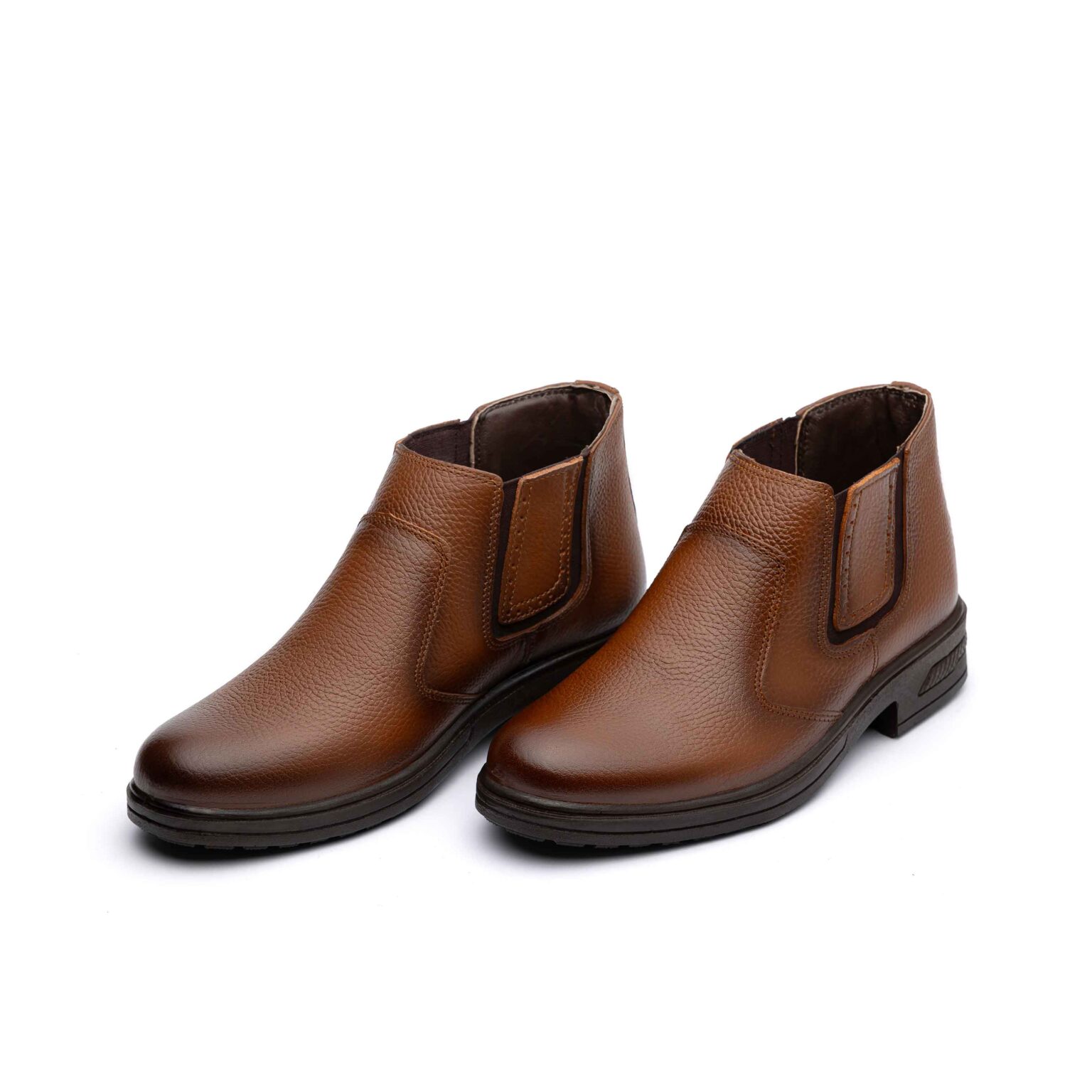 پوتین چرم اصل تبریز با رویه چرم طبیعی، آستر چرم صنعتی، کفی سوئیت پارچه ای و زیره تزریق