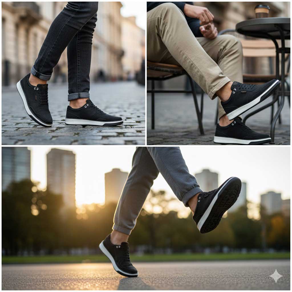 کفش اسپرت انرژی بندی مردانه چرم طبیعی -رنگ مشکی – فروشگاه تبریزپا