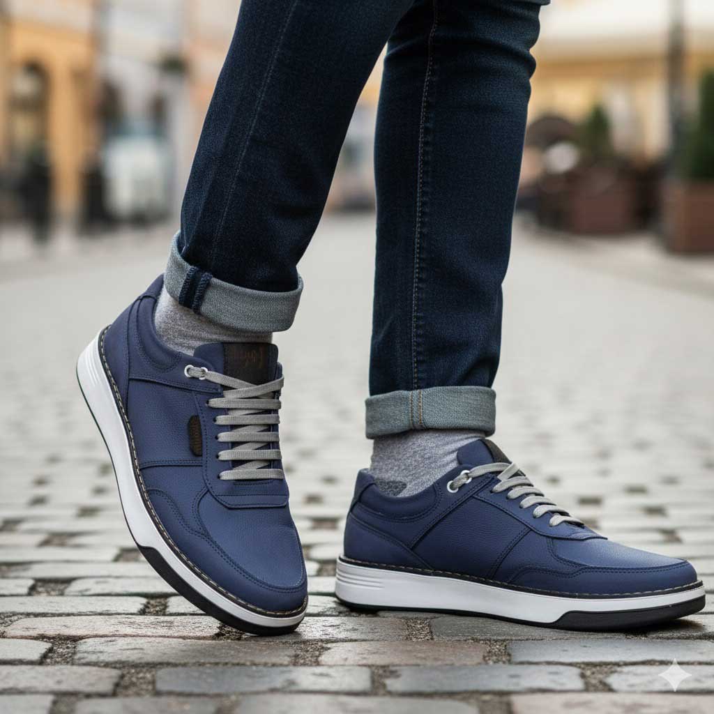 کفش انرژی نابوک بندی مردانه چرم طبیعی اسپرت – رنگ سرمه ای - فروشگاه تبریزپا