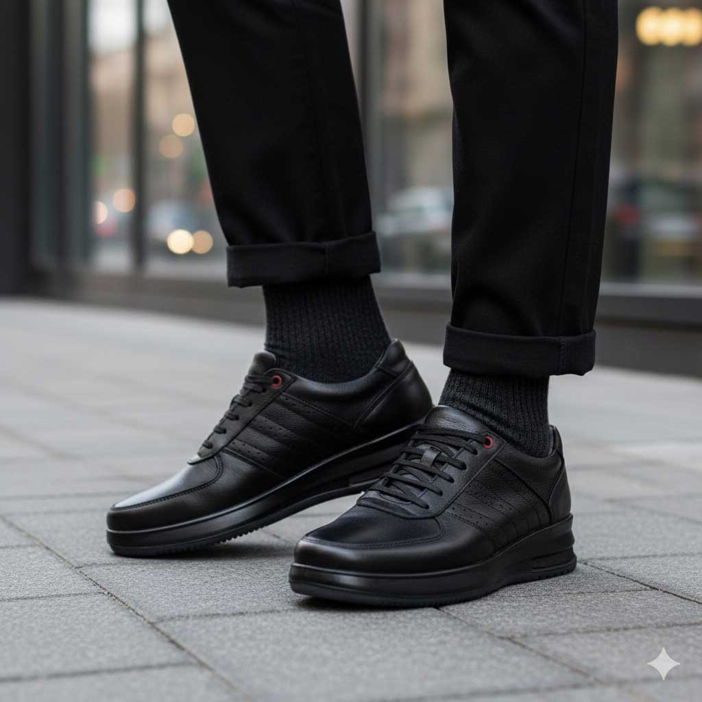 کفش چرم اصل تبریز با رویه چرم طبیعی، آستر چرم طبیعی، کفی طبی چرم طبیعی و زیره تزریق دورنگ