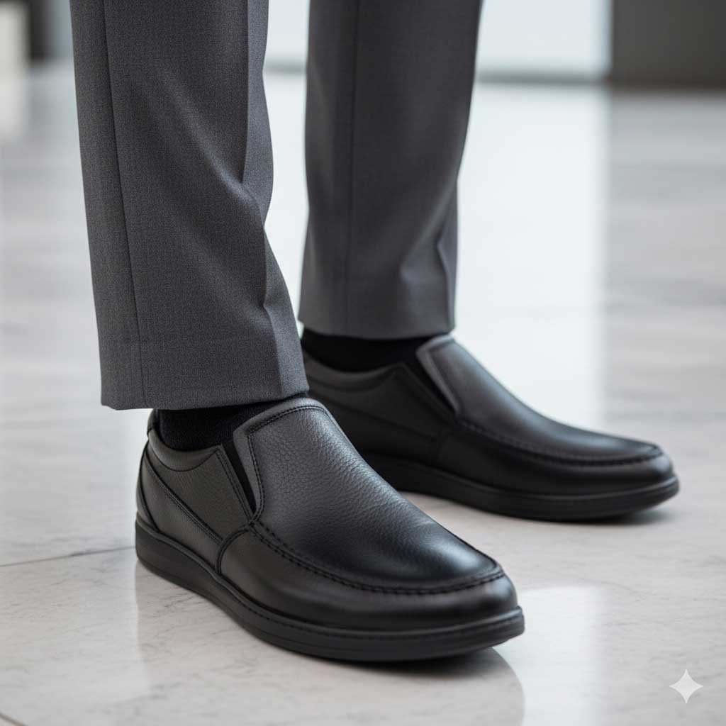 - کفشهای چرمی معمولاً بعد از مدتی کمی جا باز میکنند، پس بهتر است نیم سایز کوچکتر انتخاب شوند.