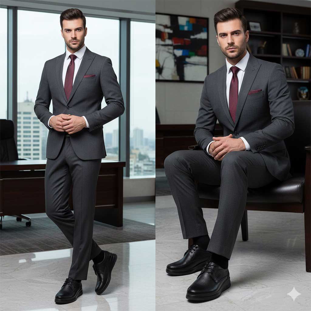 کفش روزانه چرم طبیعی استیل | خرید اقساطی