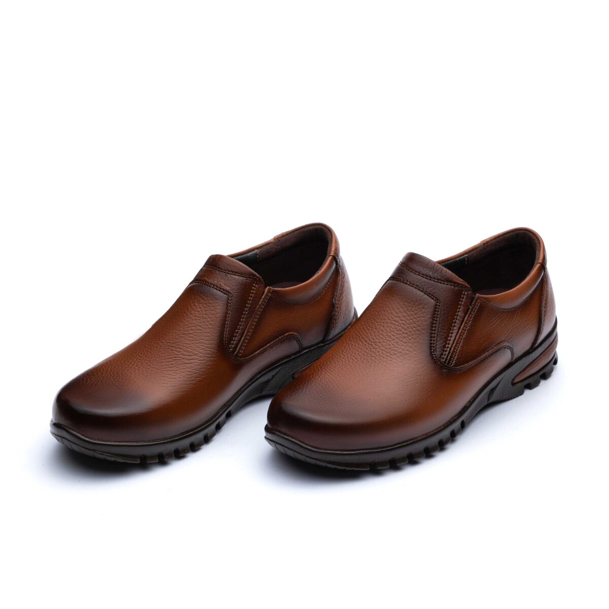 کفش چرم اصل تبریز با رویه چرم طبیعی، آستر چرم صنعتی، کفی سوئیت پارچه ای و زیره پی یو