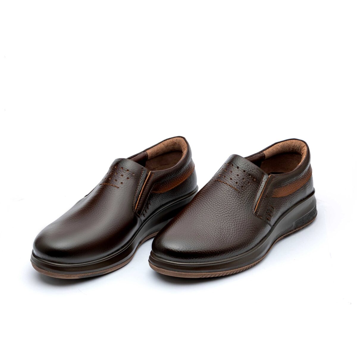 کفش چرم اصل تبریز با رویه چرم طبیعی، آستر چرم طبیعی یا چرم صنعتی، کفی طبی چرم طبیعی یا کفی سوئیت پارچه ای و زیره تزریق