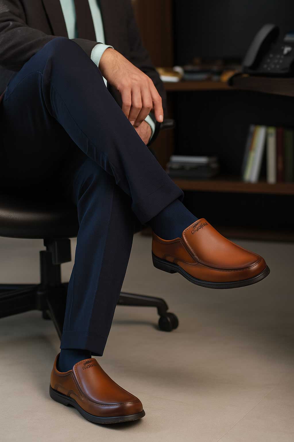 کفش چرم اصل تبریز با رویه چرم طبیعی، آستر چرم طبیعی، کفی طبی چرم طبیعی و زیره ترمو